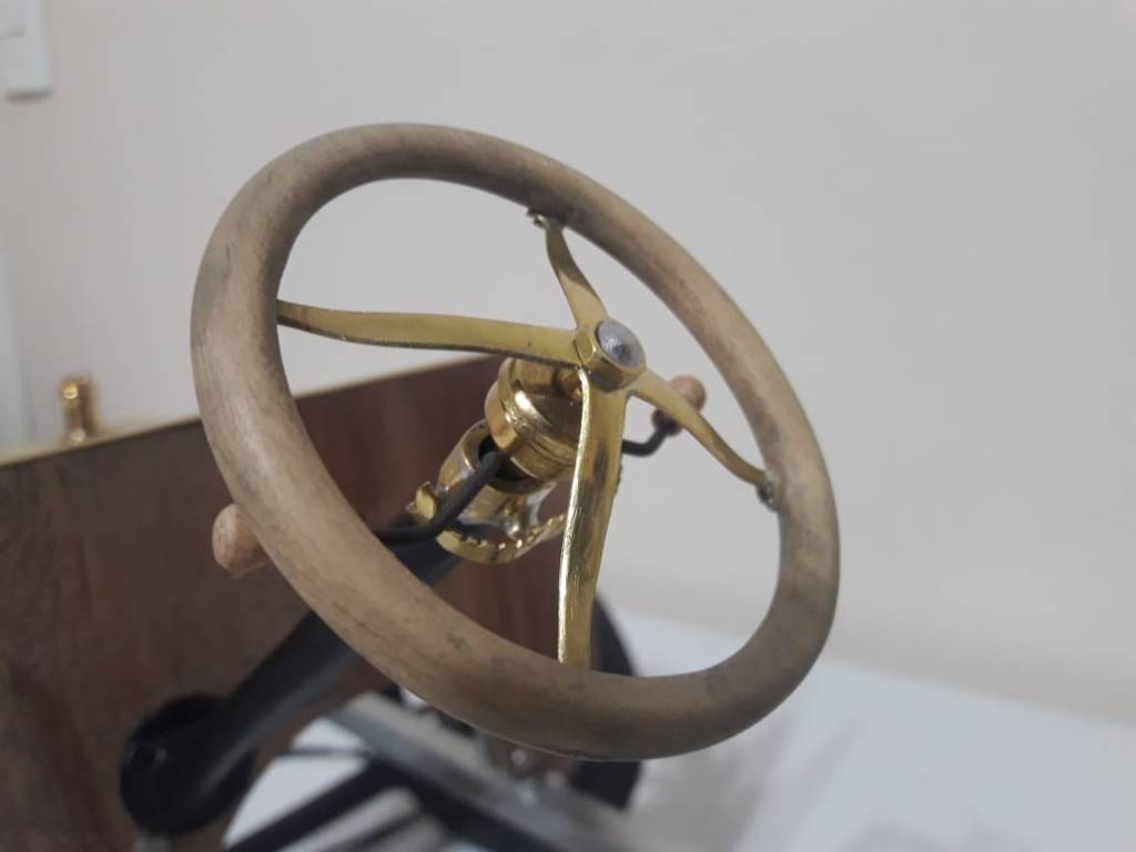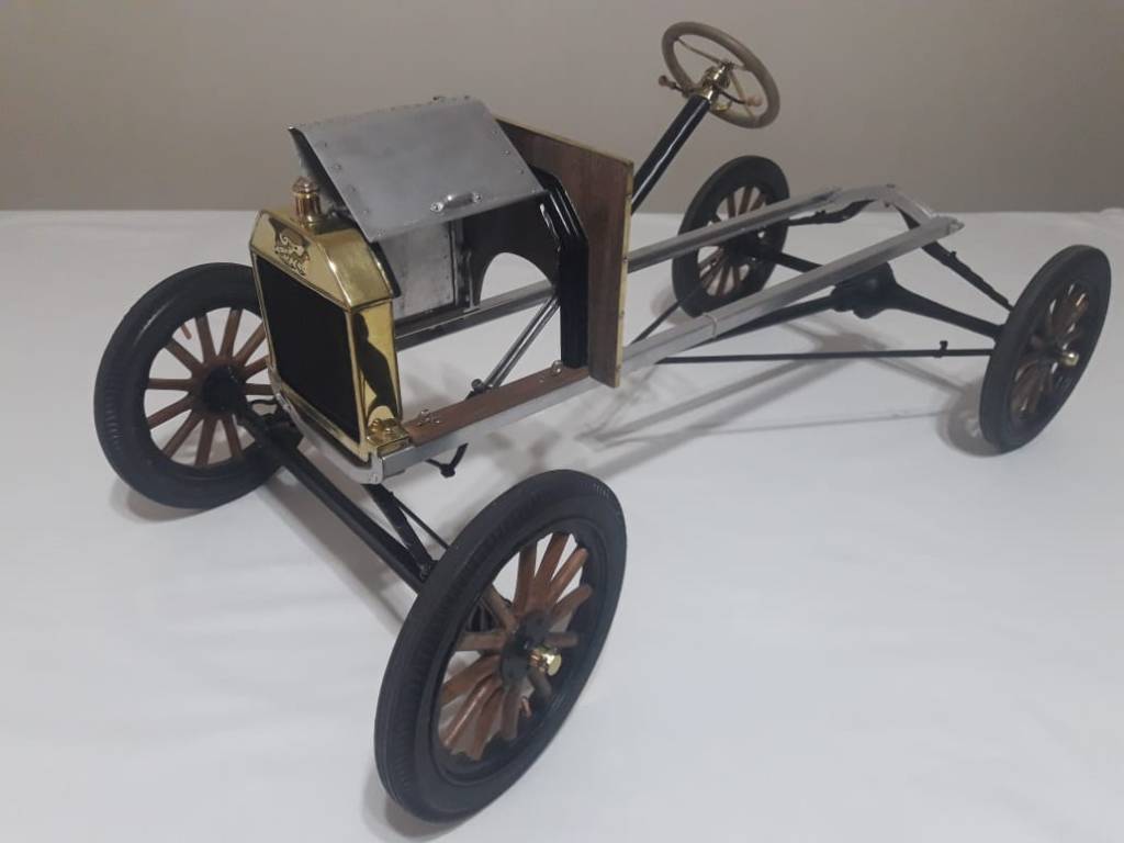 Capot_Clips de cierre – Hood clipsCapot aluminio – Aluminum hoodCapot abierto – Open hoodCapot terminado – Hood finishedParabrisas – WindshieldParabrisas – WindshieldParabrisas – WindshieldPorta estribos – Stirrup holdersPorta estribos – Stirrup holdersGuardabarros y estribos terminados – Fenders & stirrups finishedGuardabarros y estribos terminados – Fenders stirrups finishedGuardabarros y estribos terminados – Fenders & stirrups finishedMotor terminado – Engine finishedMotor colocado – Engine positionedMotor colocado – Engine positionedPedales – PedalsCaja de bobinas – Coil boxGasógeno – Carbide generatorMotor colocado – Engine positionedAbrazaderas de elástico delantero – Front spring clipsCaño de escape y abrazaderas de elástico trasero – Exhaust muffler and rear spring clipsFreno de mano – Hand brakeFreno de mano – Hand brakeTrabajo en madera de la carrocería – Wood body workTrabajo en madera de la carrocería – Wood body workCarrocería montada – Body mountedDetalle del piso – Floorboards detailVista lateral – Side viewVista trasera – Rear viewVista delantera – Front viewProbando el traje del Delivery – Trying on Delivery suitProbando el traje del Delivery – Trying on Delivery suitProbando el traje del Delivery – Trying on Delivery suitProbando el traje del Delivery – Trying on Delivery suitArmando los espejos – Assembling the mirrorsEspejos instalados- Mirrors installedCarrocería terminada – Body finishedCarrocería terminada – Body finishedCarrocería terminada – Body finishedCarrocería terminada – Body finishedCarrocería terminada – Body finishedTapizado terminadoTapizado instaladoComienzo de la bocina, tornillo de terminal de batería. Barra de 3 mm trabajada para simular caño de conexiónTornillo cortado y soldadoTornillo limadoVálvula de cámara de camión para hacer el caño retorcidoBocina terminadaBocina instaladaComienzo de los farolesSoldando las partesSoportes de fijaciónFaroles delanteros terminadosFaroles instaladosVista general